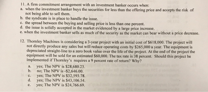 Solved A Firm Commitment Arrangement With An Investment Chegg Com